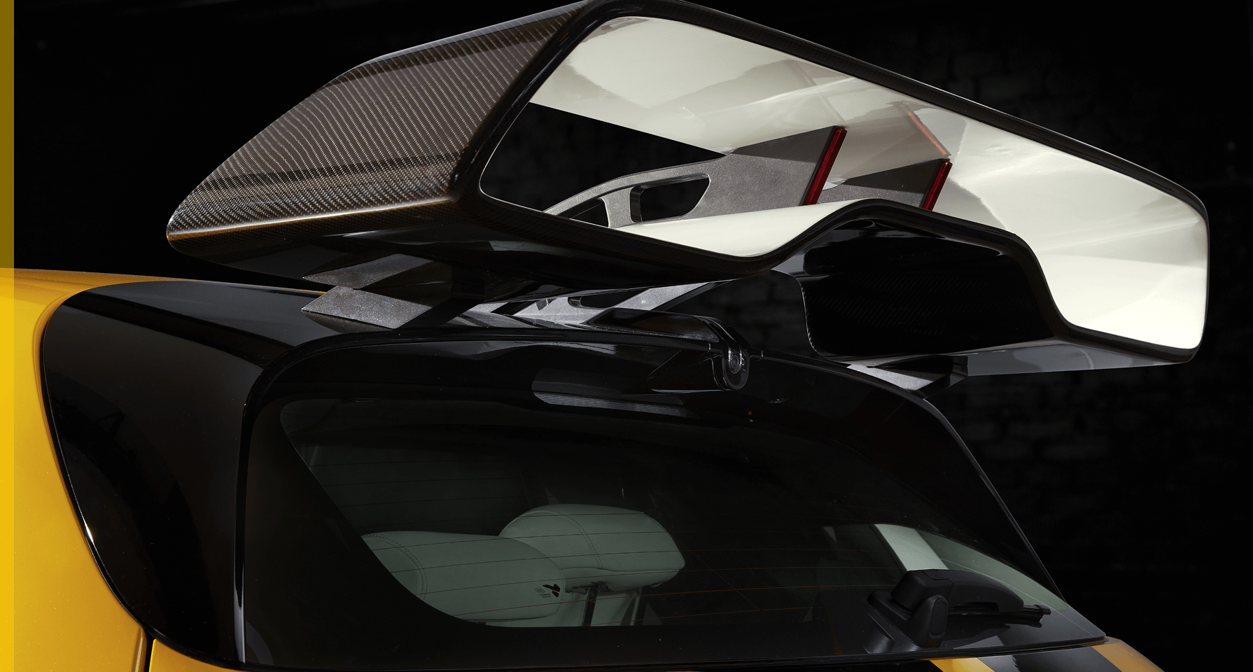 The encounter between the pure white interior and the golden exterior comes as another surprise, allowing one to further appreciate the exquisite beauty of collision and balance. The golden steering wheel centering mark and the golden seatbelts throughout the vehicle serve as striking finishing touches. The entire roof is covered with black Alcantara, and the white-black color contrast, accentuated by gold details, fully embodies a sporty yet premium texture.